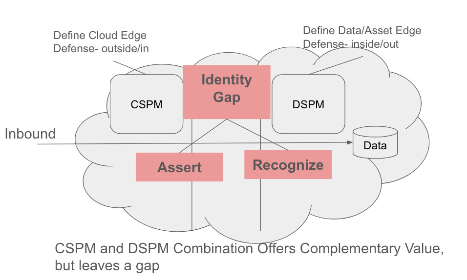 Identity is not a static thing, identity is from-to. One party asserts, and another recognizes. Put in tooling terms, the end of a CSPM transaction is an identity assertion, and the beginning of a DSPM protected systems is an identity recognition. But neither CSPM or DSPM delves deep into identity today.